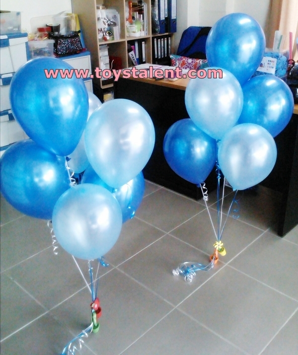ลูกโป่งเนื้อมุก/เมททัลลิก สีฟ้าอ่อน/สีน้ำเงินไซส์ 10 นิ้ว ช่อละ 6 ลูก