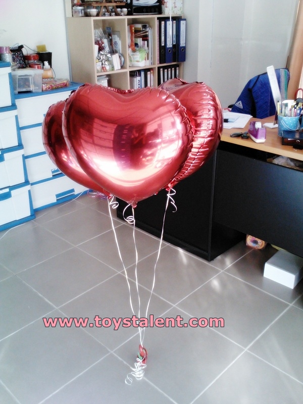 ลูกโป่งฟลอย์ รูปหัวใจ สีแดงไซส์ 18 นิ้ว จัดช่อ 3 ลูก พร้อมฐานยึดลูกโป่ง