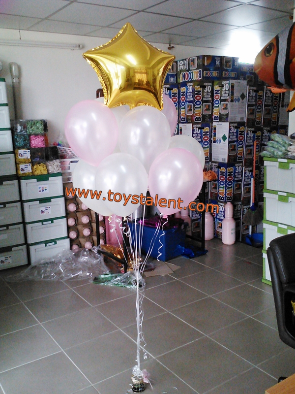 ลูกโป่งเนื้อมุก และแมททัลลิกไซส์ 10 นิ้ว จัดช่อ 5 ลูก พร้อมฐานยึดลูกโป่ง