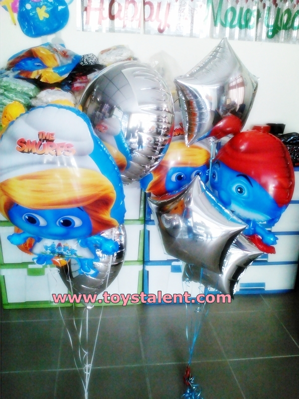 ลูกโป่งฟลอย์ การ์ตูนรูป Smurfs ผสม ลูกโป่งฟลอย์สีเงินไซส์ 18 นิ้ว